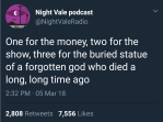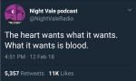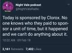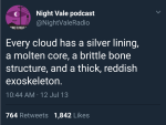 dawnmarierose Uncategorized August 15, 2018December 7, 2018 1 Minute angelsnamederika: The wise words of Night Vale twitter truly hit us whenever we see them Share this: Share on X (Opens in new window) X Share on Facebook (Opens in new window) Facebook Like Loading... Related Published by dawnmarierose View all posts by dawnmarierose Published August 15, 2018December 7, 2018
